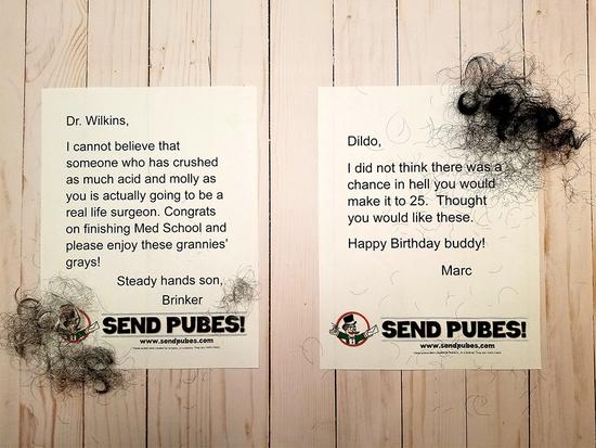 - "Happy Birthday! I picked these fresh pubes just for you." See you soon!